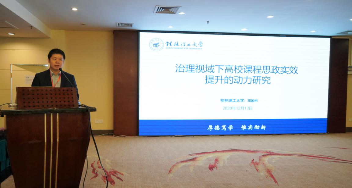 会上,邓国彬做题为《治理视域下高校课程思政实效提升的动力研究》的主旨发言。邓国彬认为,要从治理体系现代化的战略高度构建高校课程思政能力提升体系,注重加强制度体系建设并以其作为提升实效的根本引领力。同时,以积极引导多元主体参与和深入推进三全育人为重点,从根本上推动高校课程思政实效提升。邓国彬提出,持续改善高校课程思政的生态环境以及不断满足学生全面发展的现实需要,是提升课程思政实效的基本张力和内在驱动力。发言得到了与会专家学者的广泛认可。