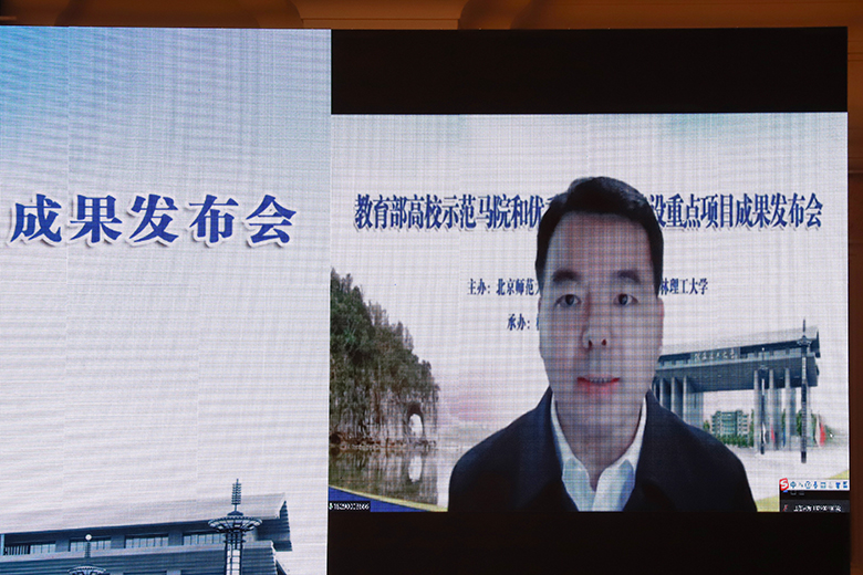 学校党委书记李国忠以视频连线形式作项目成果发布