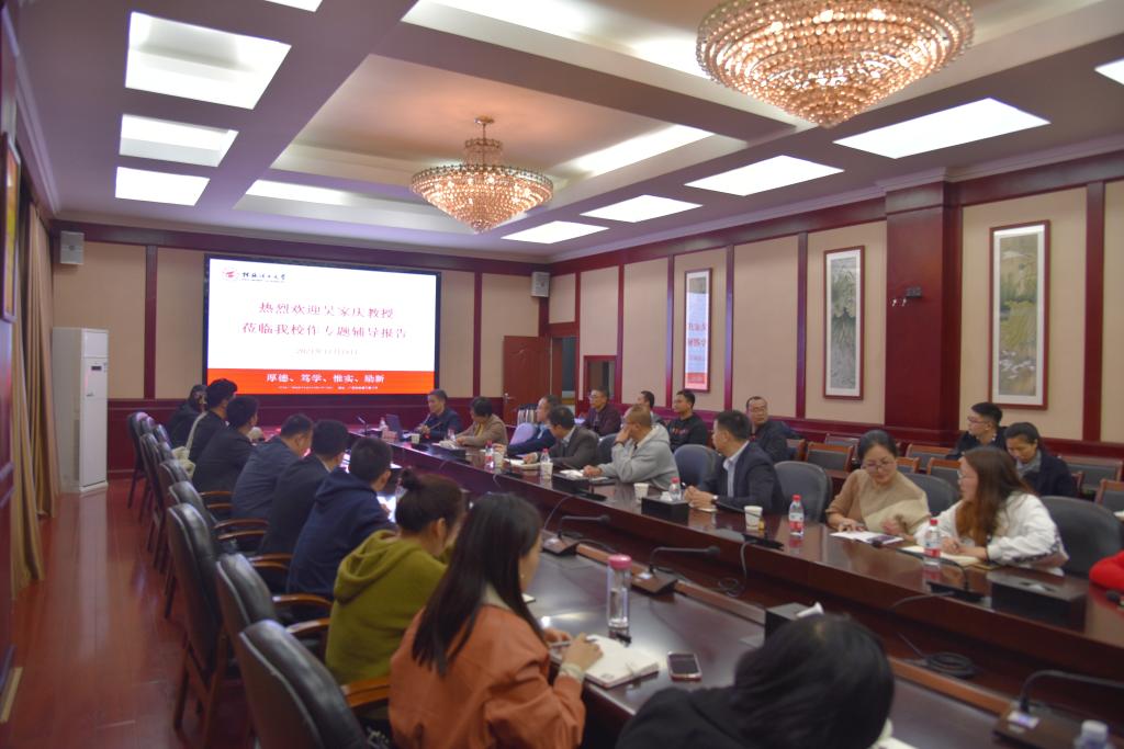 为进一步提升我校国家社科基金项目申报质量,切实做好2022年度国家社科基金项目申报工作,11月18日,广西大学君武学者特聘教授吴家庆应邀在屏风校区教八栋三楼会议室作了国家社科基金项目申报专题辅导报告。学校副校长邓国彬出席报告会。党办校办、学生工作部(处)及tyc1286太阳成集团部分教师代表40余人参加报告会。