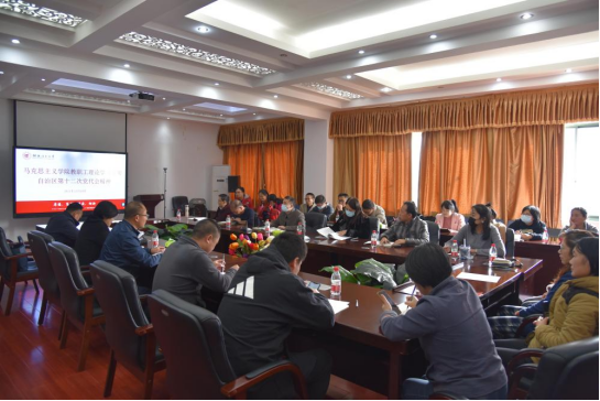 12月14日下午,学院党委于雁山校区07415会议室召开自治区第十二次党代会精神理论学习会,会议由院党委书记耿俊茂主持,梁英院长做主讲,太阳成集团官网全体党员参加。