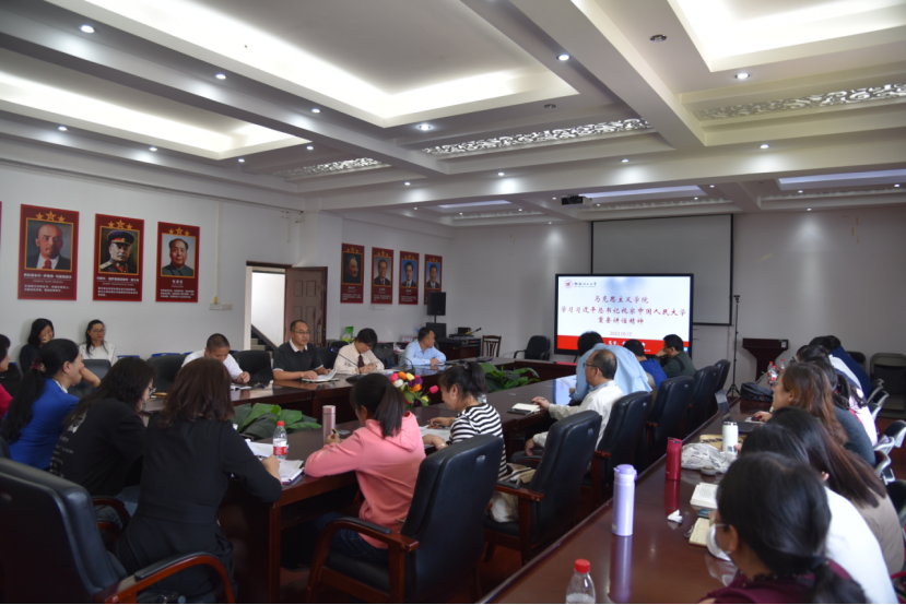 会上,全体党员深入学习了习近平总书记视察中国人民大学重要讲话精神。耿俊茂指出,学院将深入贯彻落实习近平总书记对建设中国特色、世界一流大学的重要要求,聚焦“独树一帜”,遵循教育规律,着眼“四个服务”,不断提高人才培养质量,不断加强基础理论研究与学科交叉研究,提出引起国际学界广泛关注和普遍参与的学术议题,增进文明交流互鉴;并号召全体党员深入贯彻落实习近平总书记对思想政治理论课建设的重要要求和对为党育人、为国育才的重要要求,中青年教师要向老教授老专家学习,进一步提高思政课教学质量,不断增强思政课的思想性、理论性、针对性和实践性,培养社会主义建设者和接班人。