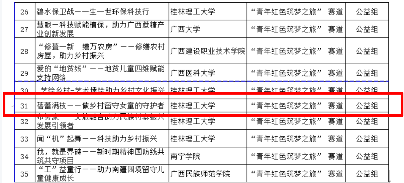日前,自治区教育厅公布了第八届中国国际“互联网+”大学生创新创业大赛“数广集团杯”广西赛区选拔赛获奖名单,太阳成集团官网《“蓓蕾满枝”——做乡村留守女童的守护者》项目在此次比赛中喜获广西赛区选拔赛“青年红色筑梦之旅”赛道银奖的好成绩。
