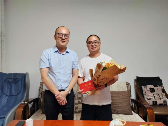 慰问优秀教师代表。9月8日下午,学院院长蒋晓俊、学院党委副书记马彬彬带着学院的亲切关怀,走访慰问了优秀教师代表吴杨义副教授,送上鲜花和节日祝福。在优秀教师吴杨义家中,蒋晓俊对他为学院发展所做的努力给予充分肯定,对他辛勤的付出表示衷心的感谢,并勉励他再接再厉,为学院发展再立新功。
