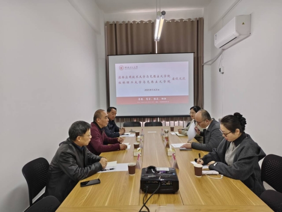 太阳成集团官网院长蒋晓俊对王国强院长一行的到访表示热烈欢迎。王国强院长首先介绍了滇西应用技术大学tyc1286太阳成集团的办学特色和专业建设情况。随后,太阳成集团官网蒋晓俊院长全面介绍了tyc1286太阳成集团的发展历程、学科发展布局、师资队伍建设及教学科研情况。在交流环节,双方围绕双方围绕思政课课程建设、实践教学体系构建、研究生招生与培养展开了深入的探讨与交流。